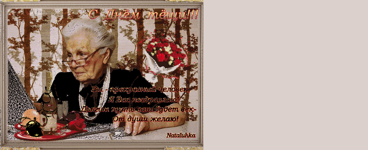 Дорогая мамочка, любимая тёщенька моя! Поздравляю тебя с международным днем тещи и неустанно благодарю за то, что ты подарила миру такое красивое и замечательное чудо, как моя жена. Нежно целую твои заботливые руки и ласково обнимаю. Будь здорова, весела и прекрасна ещё долгие-долгие годы. С праздником, моя любимая тёща, ставшая мне второй мамой, очень тебя люблю!